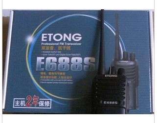 亿通-688S 400-420 、450-470 节点功能:在电池节电功能在没有收到信号或其他任何操作的时候,节电功能自动打开, 电池不足警告,发射预警警告,均是电池低电量报警 监听功能, z VOX功能:声控功能, 报号功能, 亚音(QT)和数字亚音频(DQT) 电池:7.2V 、1000毫安 标准配置:主机 电池 充电器 后夹天线 说明书 合格证 保修卡